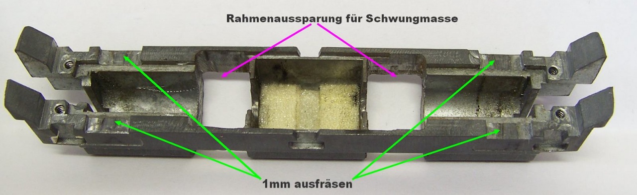 Des weiteren habe ich die Lok noch einen Millimeter tiefer gelegt, da sie von Haus aus recht "hochbeinig" daher kommt.