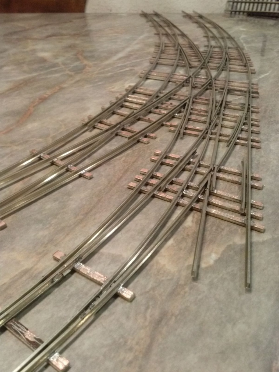 Mivel a szétszedhető festőkamrám elszívója még nem készült el, így nekiugrottam a másik íves hózentrógernek. Ez egy ROCO R5-R6 60°-os geometria, amiből a külső íven középen is kiágazik egy kitérő. Ez egy olyan rendszernek lesz a központi eleme, ami tk. három hurok. A hózi két "sima" végére kerül két hurok, amiből az egyik egy szint alatti tárolóba vezet, a másik pedig egy hegyi kacskaringós hurokba. A harmadik a belső kitérőből indul, és a hózi azonos oldali kitérőire tér vissza. Természetesen hátrébb el lesz ágaztatva egy másik kitérővel.  |