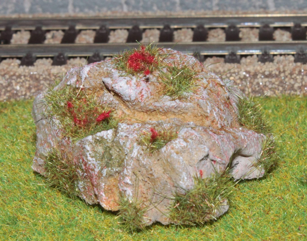 Még valami apróságot kiszúrtam, ami természetellenes lett: A 3650-es képen látható magányos szikla eláll a talajtól. (Nyilván azért, mert alatta van a fűszőnyeg-papír...) Javaslom, ha a szikla "végleges" (méret és hely szempontból is), az alatta levő füvet vágd le, és szorosan a földhöz rögzítsd le a sziklát. Mindjárt kevésbé lesz feltűnő, nem lesz akkora hézag a két réteg között.