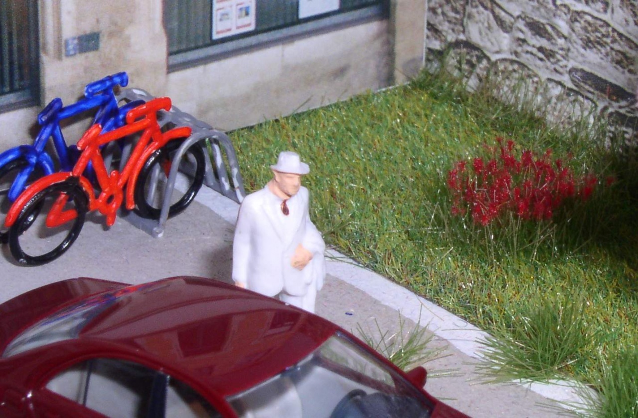 Egyetlen észrevétel, lehet, csak nekem tűnt fel: a kápolna felén eső oldalán, a bejárat felőli saroknál az épület alá látni. Oda kellene valamit tenni, de egyébként kimondottan tetszik a "kis" dioráma-vasutad!  |