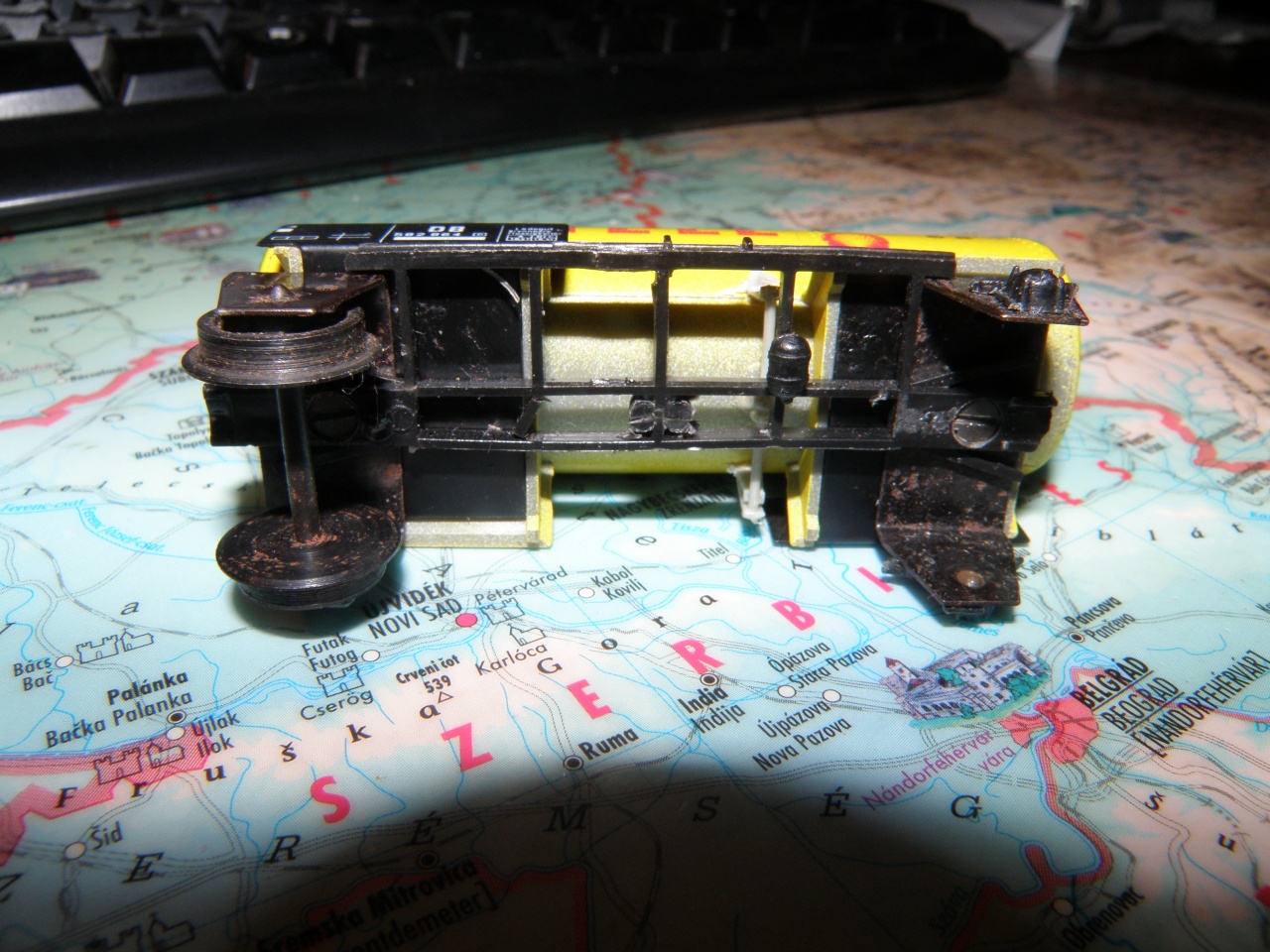 Talált példány. egy selejtezésre jelölt kisteherből szedtem ki, ott műszerfaldísz volt. Mivel én TT-zem nem igazán akarok pénzt beleölni egy H0-ás modellbe, eldobni meg sajnálom... |