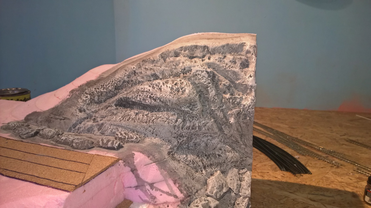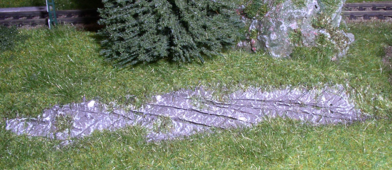 Egy kis sziklakészítés, a fű alól előbukkanó típus (Semmi hungarocell. Ez csak a fűlapra van rádolgozva, aztán karcolva)