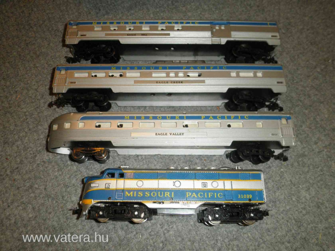 Pár hete a Vaterán beszereztem egy érdekes vonatot, Missouri Pacific felirattal, Gilbert márkanévvel. Abszolút nem tudtam róla semmit, hogy ez miféle-kiféle gyártmány. Végül a Net-en rábukkantam egy gyűjtő oldalára, ahol is kiderült, hogy ez egy Amcsi modellgyár volt, ahol ezt a modellt 1963-ig gyártották. A kocsik OK!, de a mozdony valami iszonyat, az eredeti kasznit rárakták egy Mehano alvázra, így az eredeti hajtásnak nyoma sem maradt. Tegnap este kipróbáltam, és legnagyobb meglepetésemre az ötven éves kaszni alá, szinte milliméter pontosan passzol a Bachmann hajtás tokostól-vonóstól. Már csak egy-két dolog lenne vissza: A kaszni rögzítése az alvázhoz /ahhoz a bazi nagy fémöntvényhez/ és a reflektor működésének a kitalálása. |