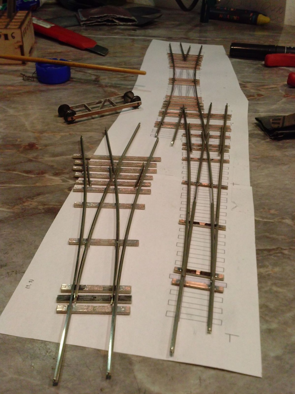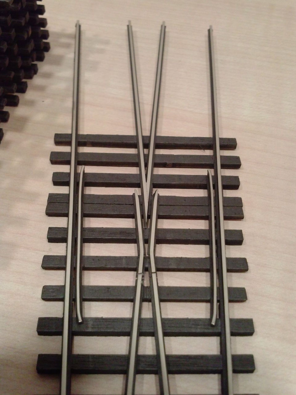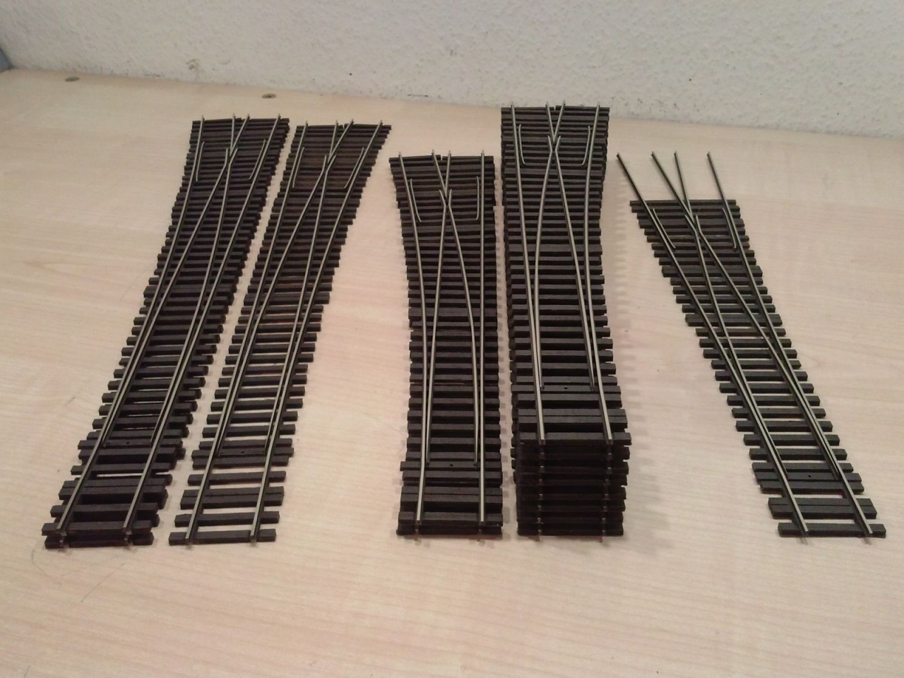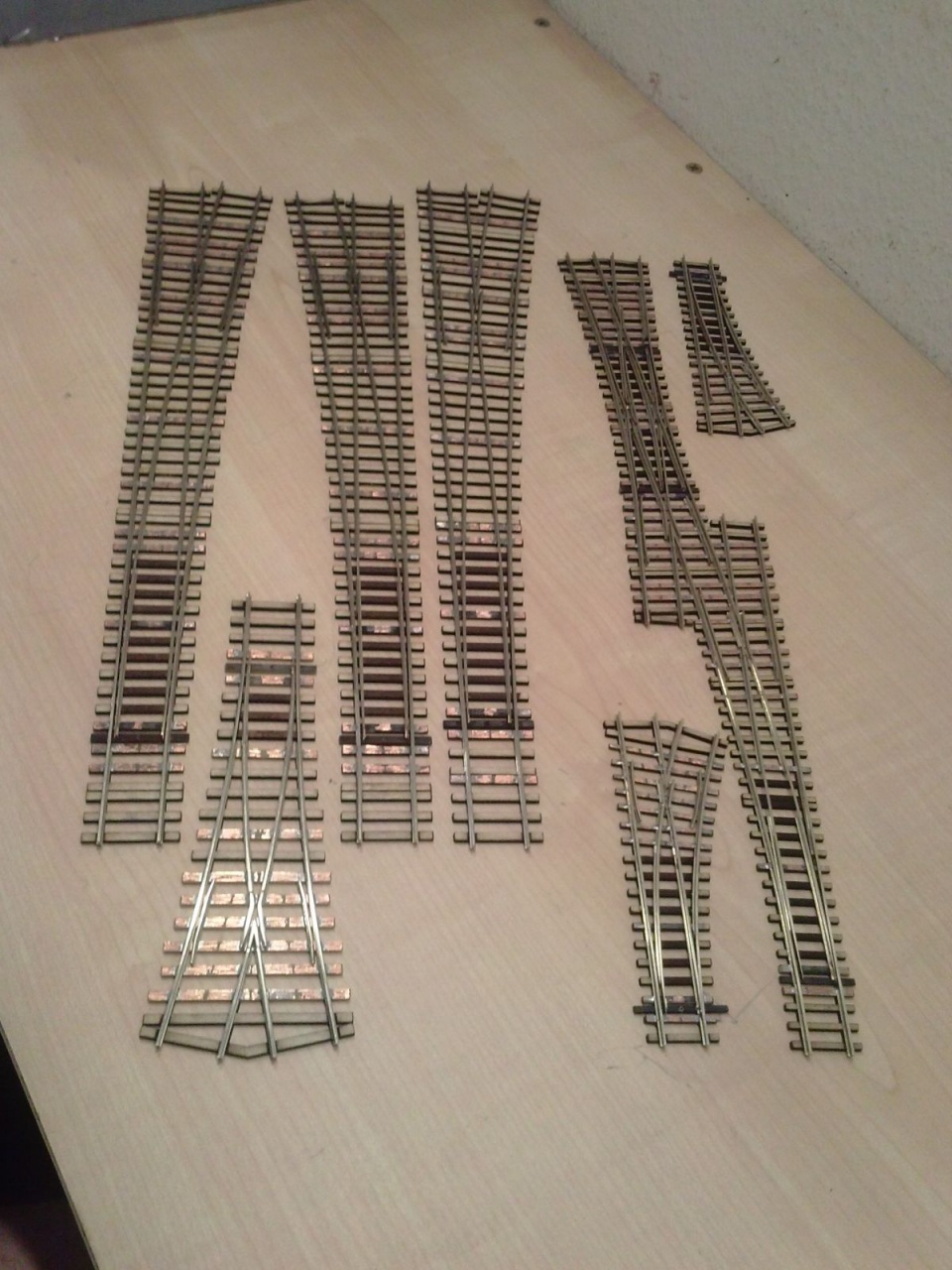Az utóbbi pár nap termése, volt, ami most készült, és volt ami már csak a talpfára várt. Két FREMO XI-es, egy ROCO 10 fokos geometria, egy PECO 24 fokos Y kicsit megnyújtva, egy TT TILLIG EW3 és egy 12 fokos angol egyedi kapcsolat, végezetül két BTTB klón. Holnap egy újabb festős nap!  |