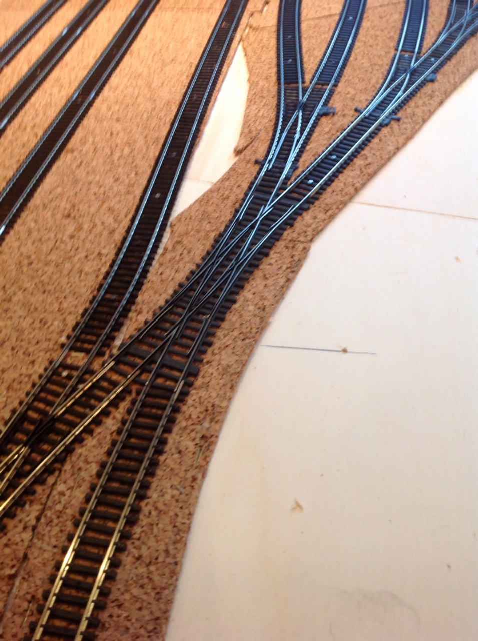 Ma összeraktuk a TTe bányavasut sinanyagát, az egész vasut kb. ilyen méretben egyben lesz beépitve a terepasztalba. Még Z sinek vannak, de már vagdaljuk ki a talpfákat, hogy modellhü ipari vasut legyen.