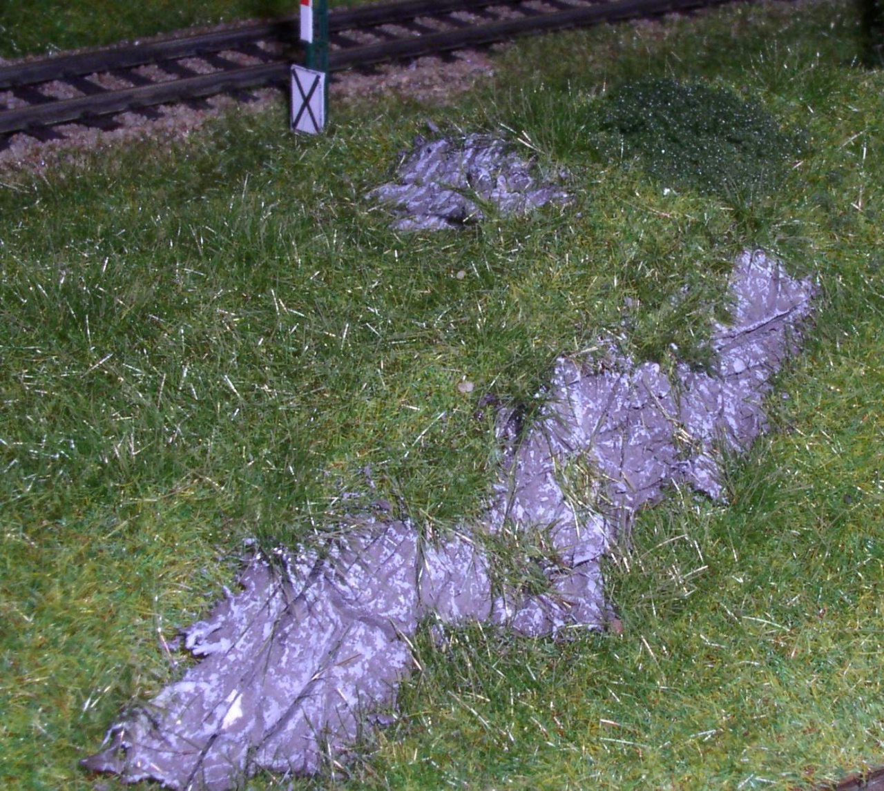 Egy kis sziklakészítés, a fű alól előbukkanó típus (Semmi hungarocell. Ez csak a fűlapra van rádolgozva, aztán karcolva)
