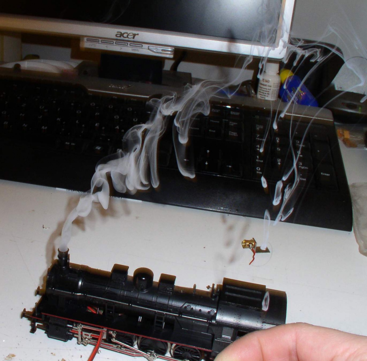 Már füstöl.  Igaz csak próba, meg kívülről kapja a tápot, de működik.
