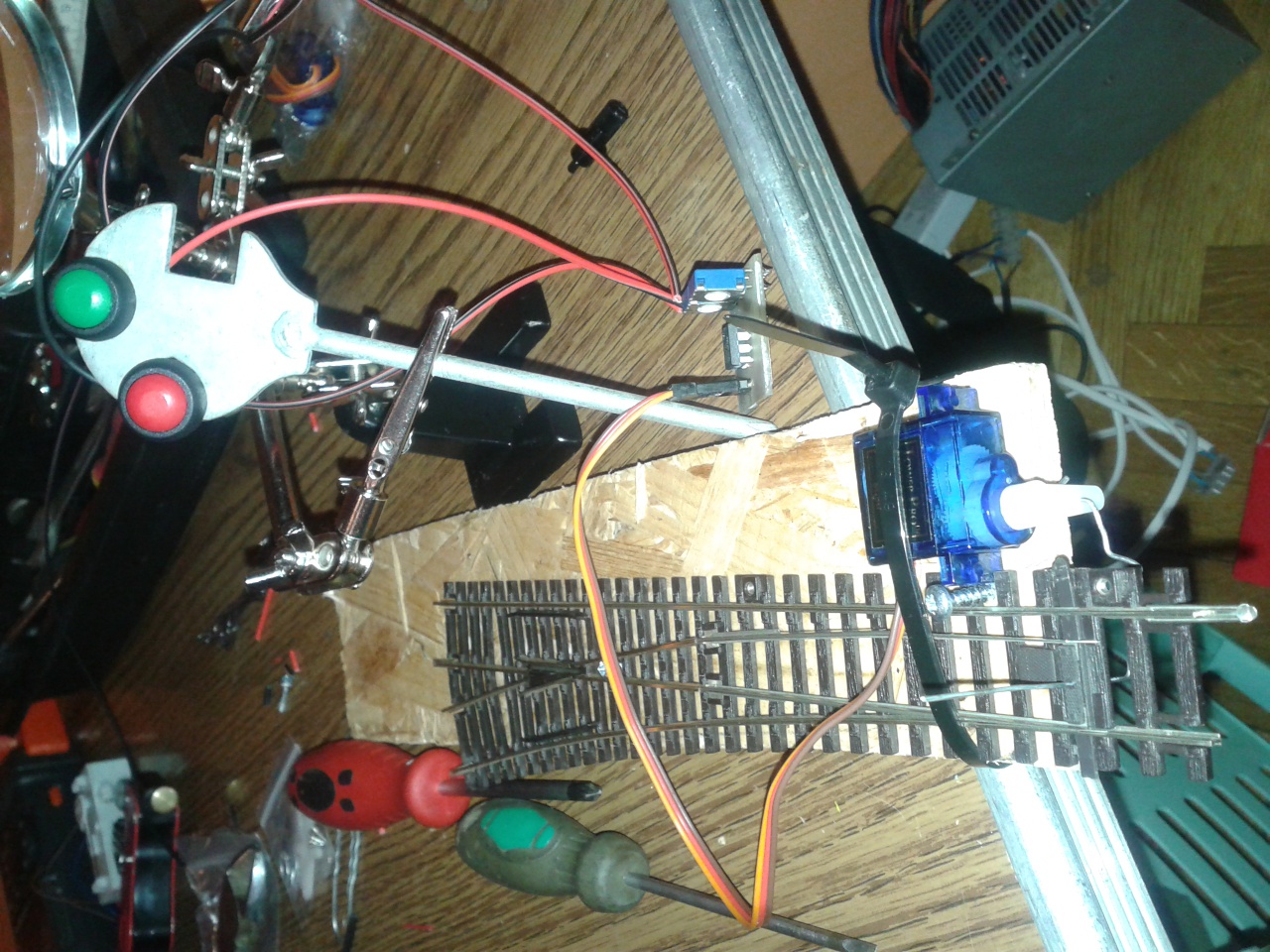 Élethű váltó átállás, ahogy azt anno Keszthelyen csináltuk, az cca. 3 másodperc véghelyzettől véghelyzetig. (Szervók működnek, Tran SW10 dekóderrel, és a Viessmann érintkező készlettel a polarizáláshoz.)