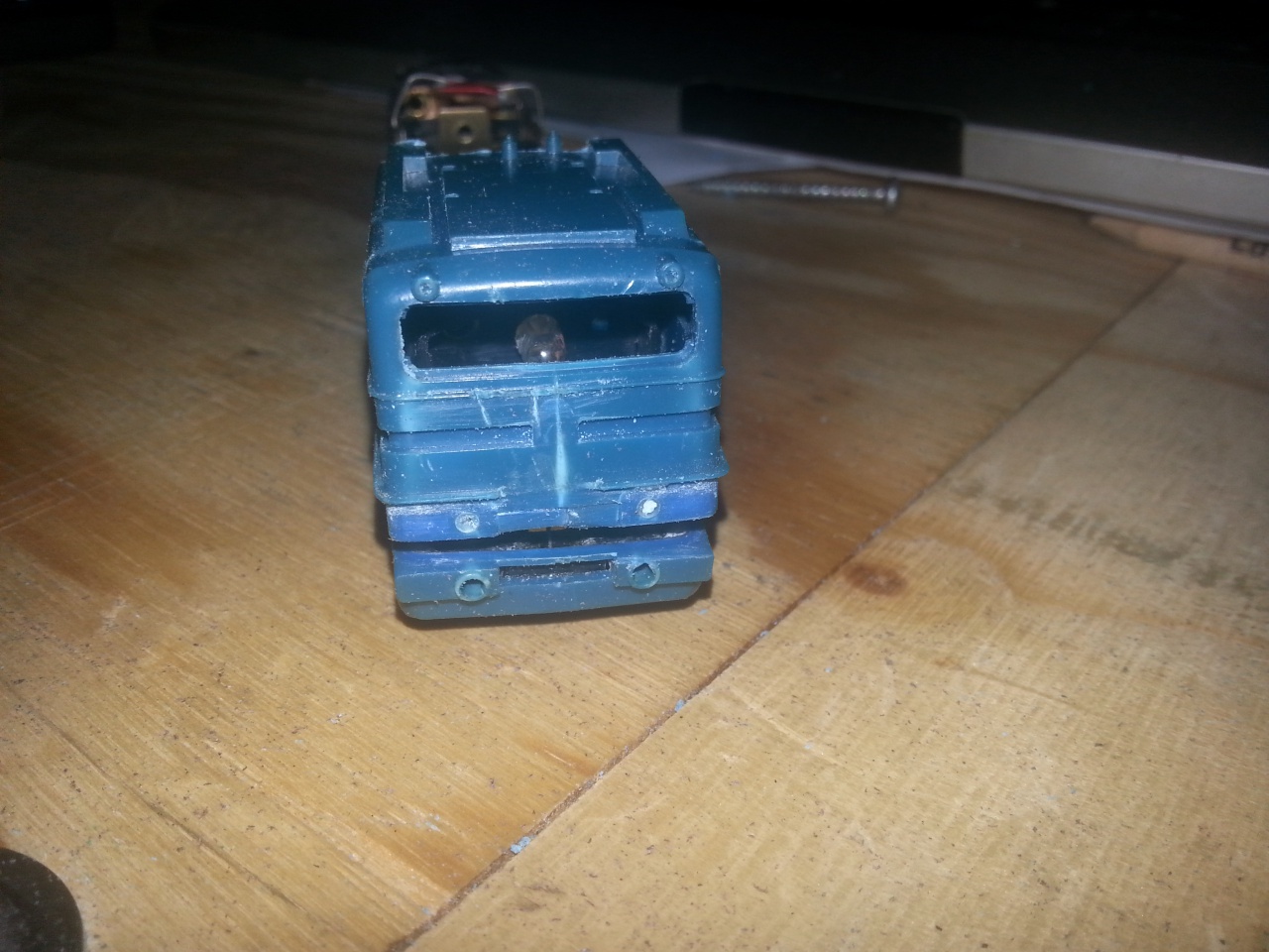 Ha a modellt egy derékszögű vonalzó mellé teszed láthatod, hogy a homlokfal szintén nem derékszöget zár az alváz (vagy a tető) vízszinteséhez képest. (legalábbis az enyéimen  ) Ez ne tartson vissza az átalakítástól. |