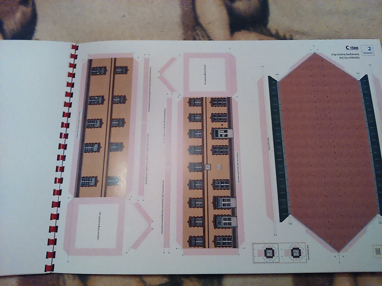 Anno nagy divat volt a hasonló, kivágós papírmodell, pl. Parlament. Én is raktam össze egyet-kettőt. Alátétnek üveglapot használtam, a hajtási éleket kiürült golyóstoll-betéttel, a nagyon precíz, vékony hajtásoknnál életlenre koptatott sniccerpengét használtam, és persze vonalzót. |