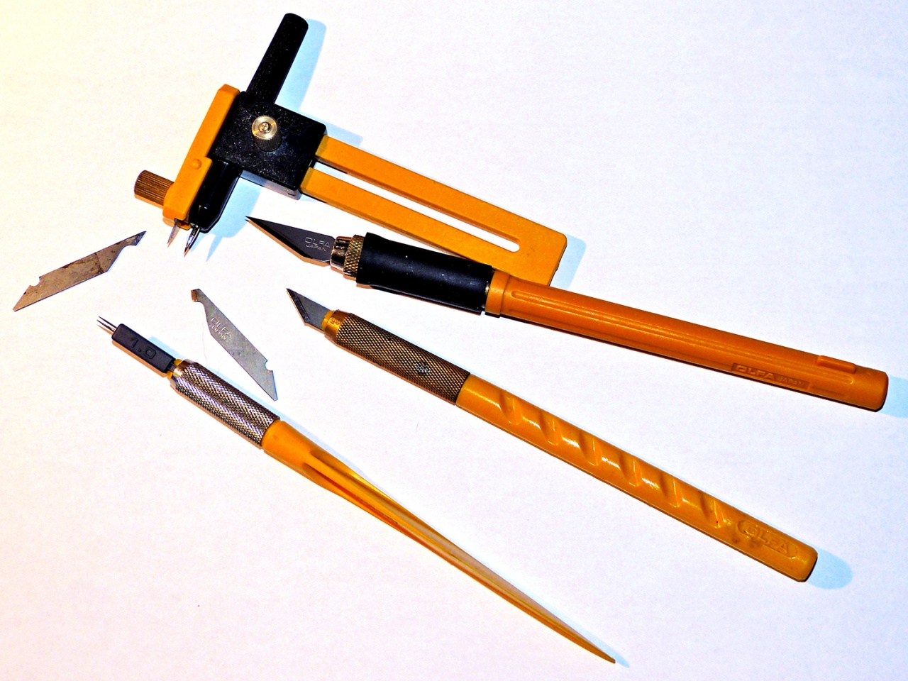 Nekem is majdnem ugyanezek vannak, meg 1 sereg más is. Ezekkel a standard pengékkel 2 baj van. Tul drágák ahhoz, hogy naponta cseréljem - márpedig a finom papirmunkához elengedhetetlen. A másik dolog meg az, hify gyakran pontosan az nincs a boltba ami kéne. Végül egy tipusra csökkentettem a választékot, ami a Nr.11-s penge - és vettem egy halommal. Ekkor került a kezembe az emlitett kés, az viszont a tördelöpengék egy egy szegmensét használja biztonságosan a fémpofákba befogva. A 9 mm-s pengék 10 darabra törhetök és egy csomagban 10 szokott lenni ( néha 12). Azaz fillérekért kapok 50-60 éles kést, amivel azután öröm dolgozni. Persze a többi kés is kéznél van, ha kell.