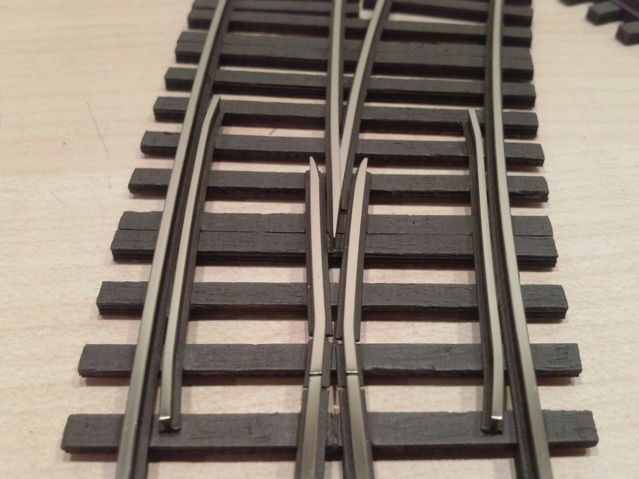 Ez egy N-es 1:7,5-es Német típusú kitérő méretarányos kicsinyítése. |