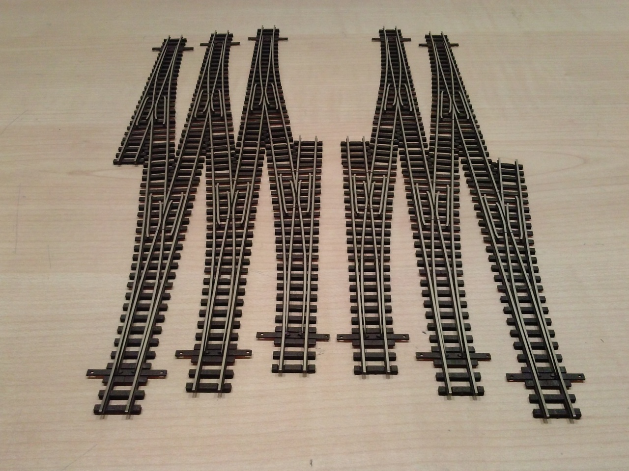 A teljes hossz 410mm, és 43mm a vágánytengely-távolság. Ez tk. 4db EW3 kitérő, csak a szívdarabok után egyenesen mennek az átszelésbe, nem fordulnak tovább 12 fokig, mint az EW3-as. |