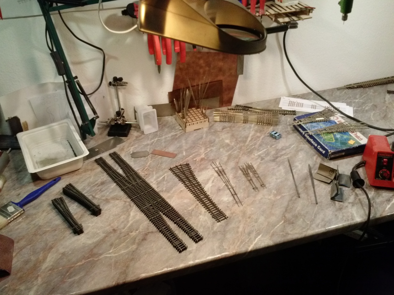 ... és összedobtam 2 db Z méretarányú, Märklin geometriájú váltót is CODE 60 profilból. |