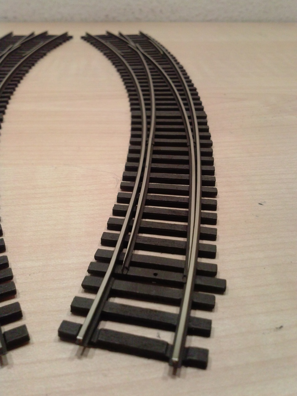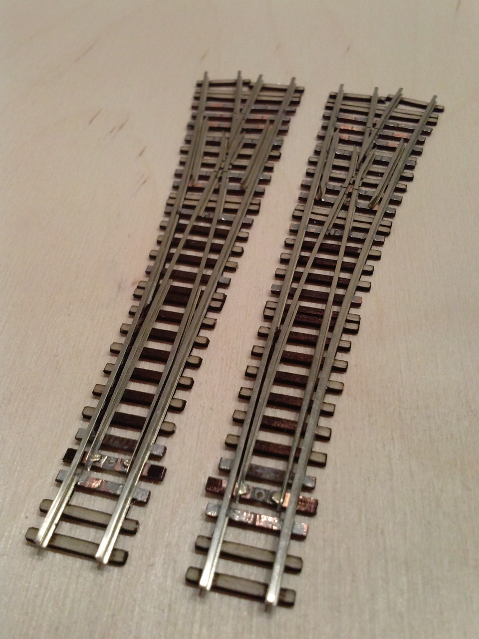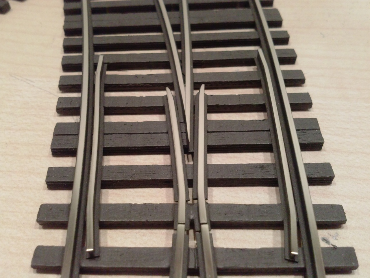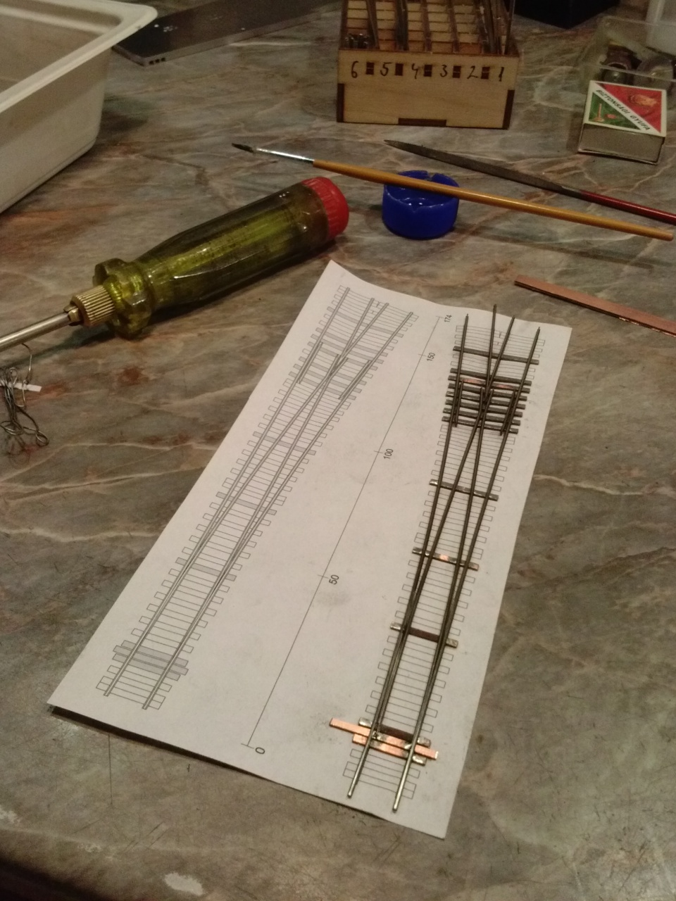 ... és összedobtam 2 db Z méretarányú, Märklin geometriájú váltót is CODE 60 profilból. |