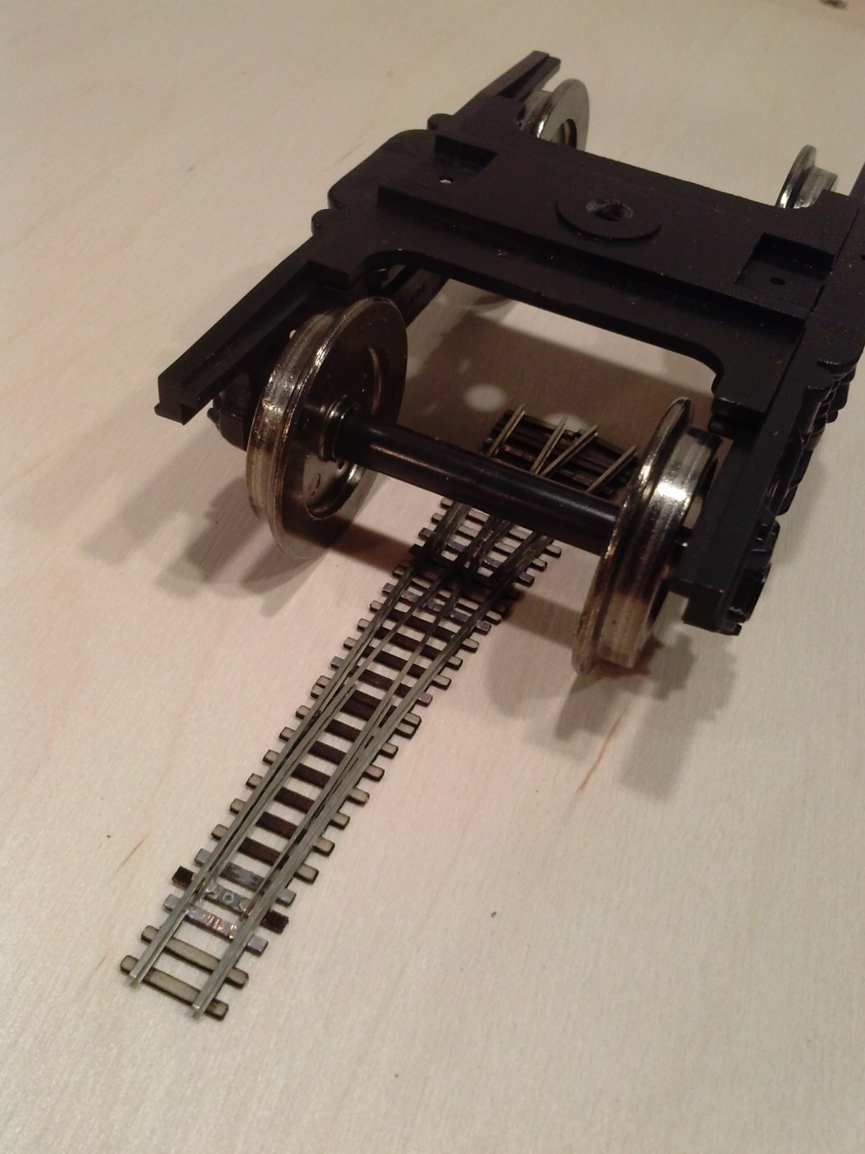 A legbiztosabb, hogy beszerzel egy darabot a kiszemelt sínböl, lehetöleg a legkisebb méretü ívet, amit használni akarsz, és leteszteled rajta a gördülöállományod.  |