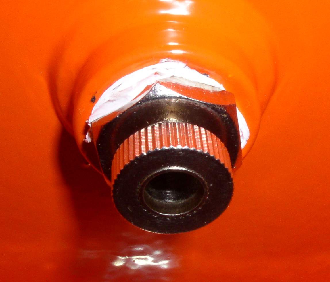 Megfordítottam a palackot. Alul van rajta egy menetes valami, de nem csap. Teflonszerű szigetelővel van becsavarozva, olyan végdugó szerűség villáskulccsal kihajtható.