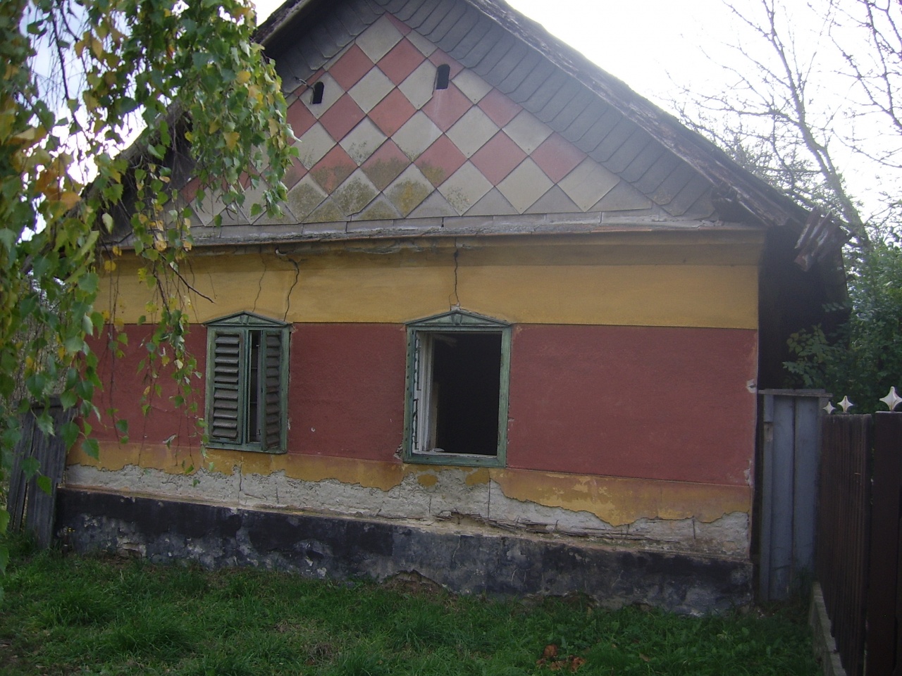 Fogadjunk, hogy ez olyan épület, mint anyósom háza. Tégla alapon van, de a talajszint felett már vályogház, így a lábazat csak "jelképes". |