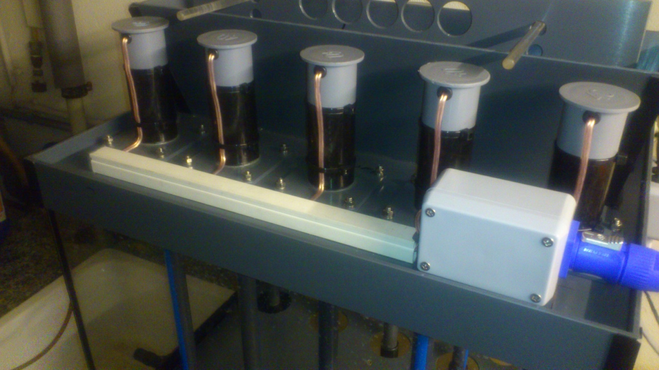 Alul van természetesen fütés ( digitálisan vezérelt) és a folyadék szintet ugy állitottuk be, hogy a max.teljesitménynél is elég legyen ( kb. 8-9 l). Ide került ( magassága) az also leválaszto lap, ami elválasztja a munkateret a folyadéktol. A motorok szabályozhatok és egy idökapcsolo vezérli a berendezést. |