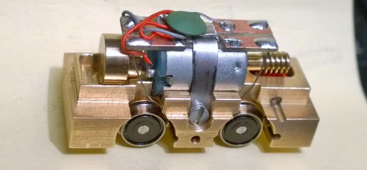 Lehet buta a kérdés és a hozzáértő szakemberek megcáfolnak, vagy megerősítenek. Az áramszedést a kerékről bronz lemezzel nem lett volna szerencsésebb kialakítani? Nem látszik számomra világosan a huzal anyaga miből van. Használat közben elképzelhető, hogy belerághat a kerék futófelületébe. Mellesleg remek kis ékszert hoztál össze. Minden elismerésem!! |