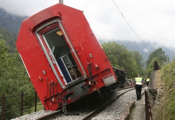Súlyos baleset volt Svájcban: Kisiklott a Gleccser (Glacier) Expressz. Sajnálatos módon egy ember meghalt, 42-en megsérültek a balesetben. Az eset "érdekessége" (ha szabad így fogalmaznom!), hogy ez a "világ leglassabb expressze", mindössze 30 km/ó sebességű... Ennek ellenére, a fetői szépségű szakaszon (St. Moritz és Zermatt között közlekedik a vonat) 3 kocsi siklott ki, amiből kettő fel is borult. (Szerencse a szerencsétlenségben, hogy csak ilyen lassan ment, ha gyorsabb, belegondolni is szörnyű, mi történt volna!  ) |