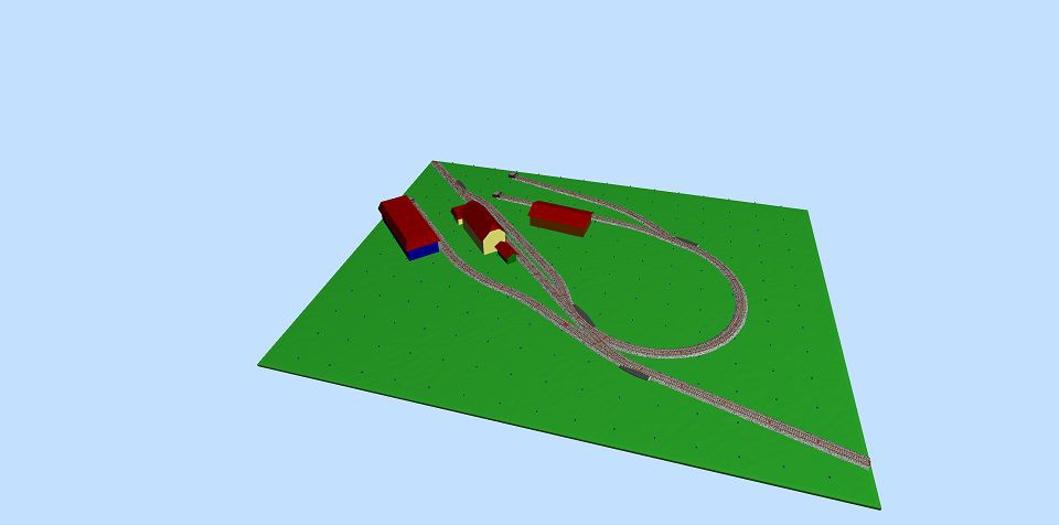 Nekem tetszik az is amit rajzoltál, csak akkor az iparvágány íve lehetne nagyobb sugarú, hogy ne az állomásépület mellé térjen vissza, csak mondjuk a sarokig. Oda mehetne egy fatelep, vagy tüzép telep.