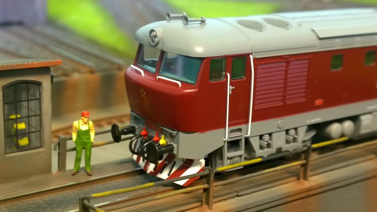 Egyébként a két egységet összekötő kinematikás áramvezetés egyszerűen zseniális! Összekapcsolni egyszerű, nem törik, könnyen kapcsolódik. Ugyanakkor szétkapcsolni már csak nagyobb erővel lehet, a pályán nem kell attól tartani, hogy szétakad a motorvonat. Egyébként a vezérlőkocsi is szed áramot, így a kétrészes egység futása nagyon biztos, nem kell áramszedési gondoktól tartani, mint más kéttengelyes kocsik esetében. A versenytárs Brawa konstrukcióját messze megelőzi a Tillig! |