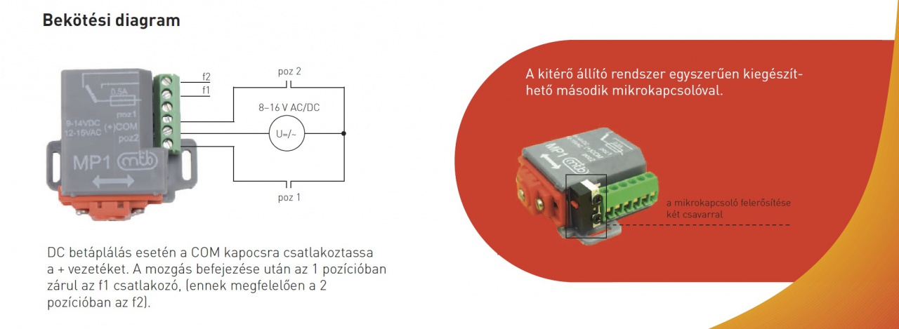Az MTB MP1 állítóműve 8-16V egyen- és váltóáramról is üzemeltethető.