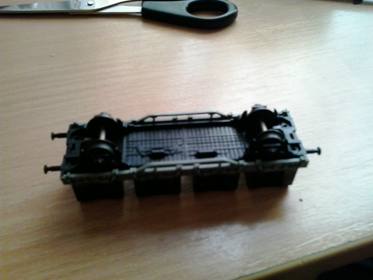 Igen, telefonos kép, ami a "minőségét" is megmagyarázza, de jóra gondolsz, ez a hosszabbik fajta kéttengelyes teherkocsi. Amúgy már megoldottam. Letörtem az egyik oldalon a pöcköket, kicseréltem a törött ütközőket, majd vízbázisú ragasztóval összeragasztottam, mint a rövid kéttengelyeseket szokás gyárilag. |