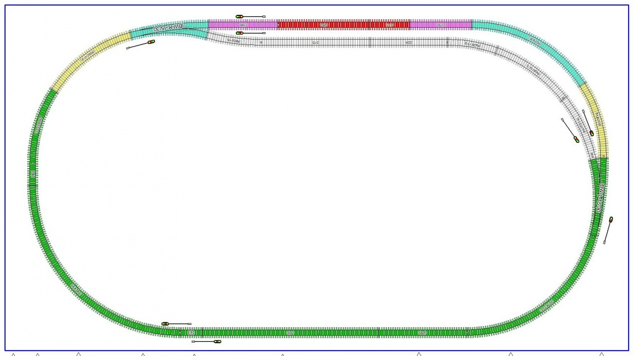 Ha még valamilyen automatikát is be akarsz épiteni akkor a vonatjaid hossza alig lehet több 60 cm-nél. A H0 mozdonyok féktávolsága >40cm onnantol ahonnan megkapja a megállási parancsot, s amire megáll a vonat végének is be kell érnie az állomási vágányra. És ekkor jönnek a bajok. Ha lassan megy a vonat akkor a mozdonyhossz meg 5-10 cm is elég, ha gyorsan megy, akkor még a 30 cm is kevés. Azaz legalább 1 vagon hossz a szorás. |