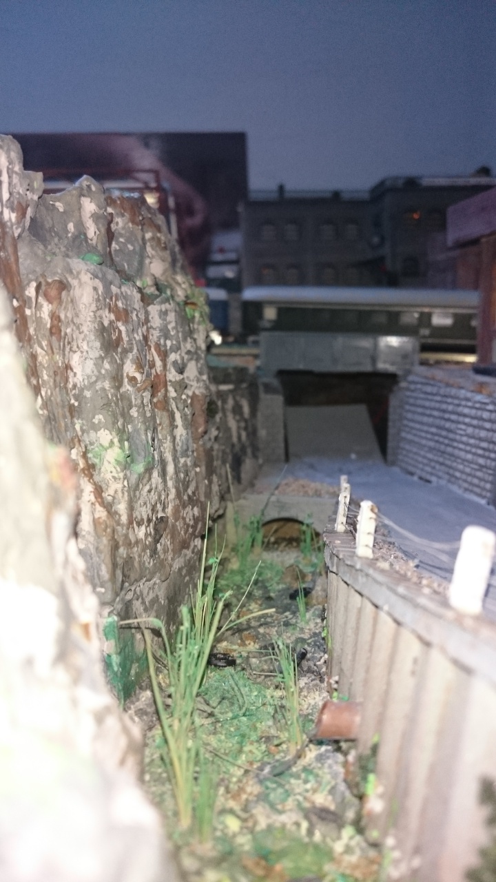Jogos felvetések, de ez a hely H0-ban annyira kicsi, hogy a helixeket már nem tudom eltolni, mert akkor nem lesz hely az állomásnak. Más épület nem is nagyon fér el. A felső szint is csak azért lett belerakva, hogy egy híd legalább legyen benne. |