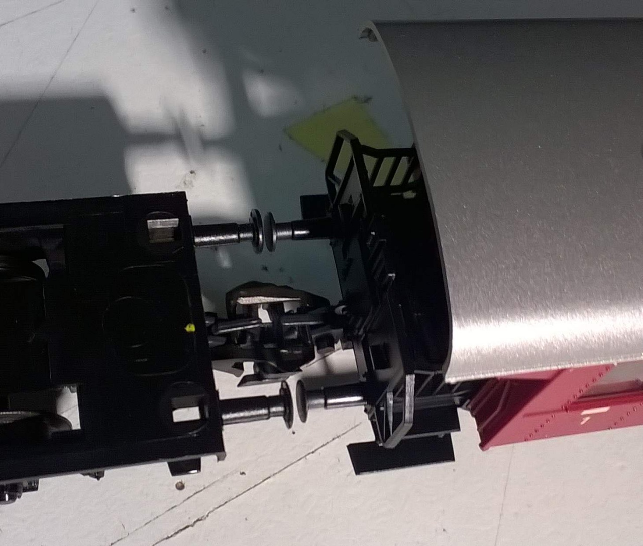 Egyébként egy tanács: A többi kocsinál is ugyanilyenek ám a tengelyvégek "csapágyazásai". Ha van kéznél egy injekciós tű, meg egy fecskendő, akkor a műanyag fészkekbe egy-egy nagyon apró "falatnyi" vazelin nagyon ki tudja tolni időben az ilyen gondokat.