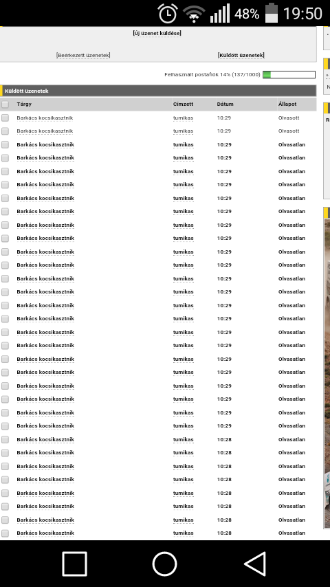De ennyiszer??  Kicsit sok volt az üzi szegény Pungor olvtársnak. Reméljük, velem volt a hiba. Te egyszer kaptad meg az üzenetet, úgyhogy valószínűleg egyszeri hiba. Köszönöm a segítséget! |