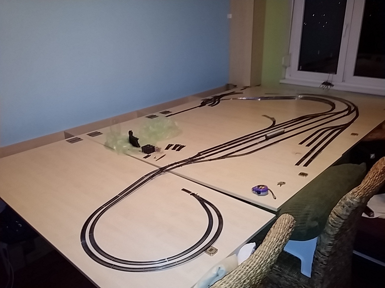 Nekem még semmi se készült el hozzá  időhiány... Én 2500·1250 mm-ben gondolkodom, azt is meg kell bírnia. Amúgy egy sima fregoli-rendszerben ha gondolkozol, akkor jó. Nem kell az épületekkel sem vacakolni, nem kell koppanásig és reccsenésig felhúzni az asztalt. |