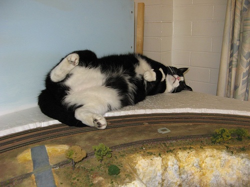 Ő is ott érzi jól magát ahol a gazdi! (A modellvasút közelében)  |