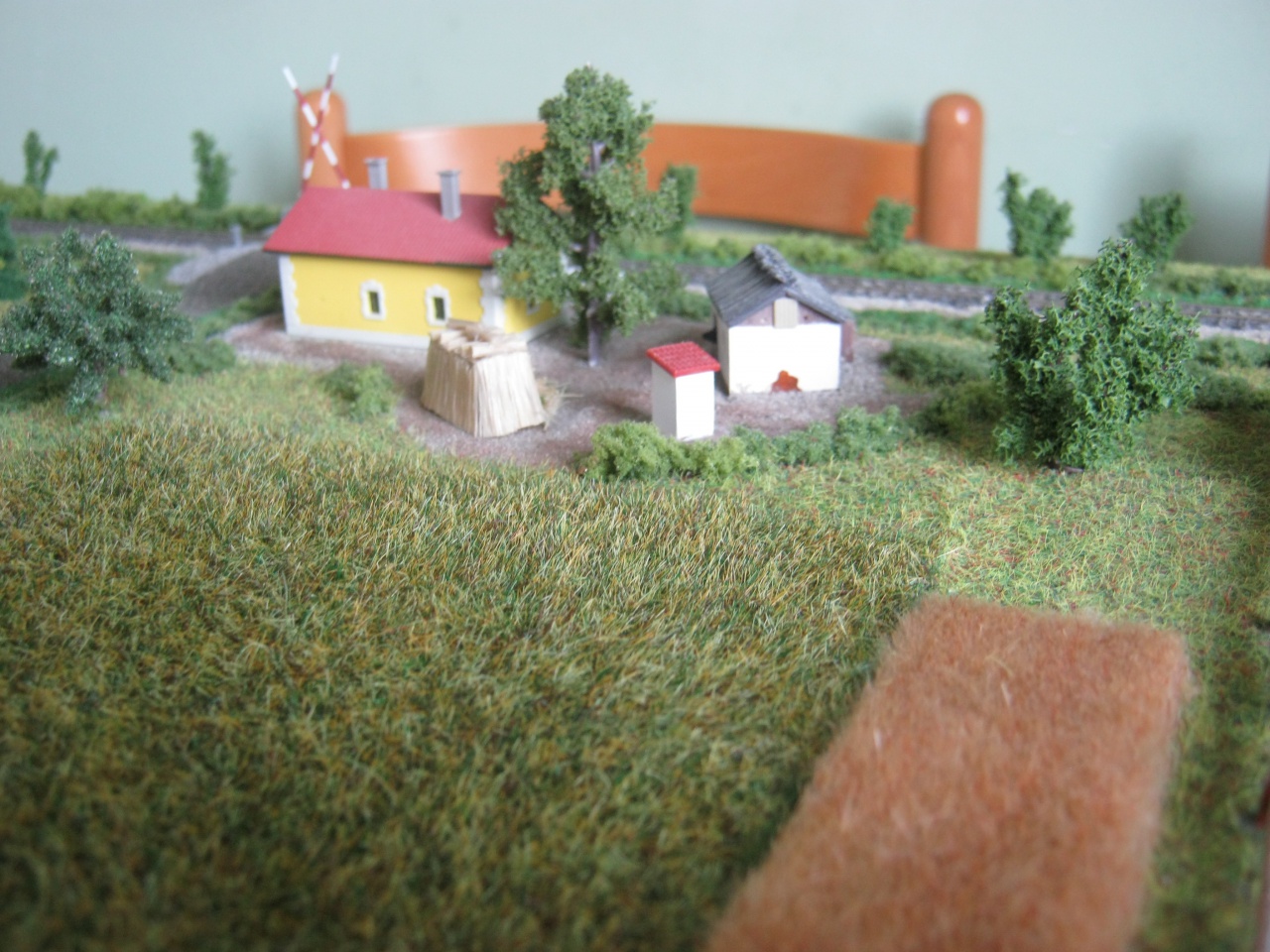 az elözőkben leírtakhoz: az 1930-as évek végét bemutató terepen van még működő gémeskút, az "Indul a bakterház"-ból a bakterház,az istálló, az árnyékszék és a szalmakazal, valamint egy kúria cselédházzal. A működő szélmalom eredetije a szentendrei skanzenban látható. Nálam még molnár lak is van hozzá. Az állomási és utcai kandeláberek, a szemaforok, a vízdaru és a sorompó kivételével minden épület, a váltó állító szervó mechanika, a MÁV kerítés, a szélmalom, a juhakol és a tehénistáló saját készítésü. A 375 és a BCmot is digitális, az utóbbi hanggal.
