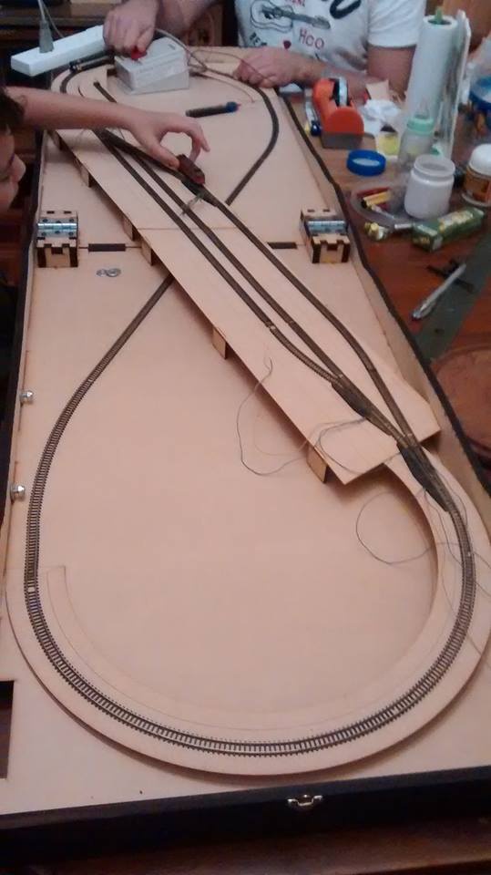 Rendszerint az asztalomon van összerakva a pálya, de nincs lerögzítve. Így majd el tudom tenni, ha éppen "zavar". Tisztítani is könnyebb lesz, mert nem másznak el a sínek.