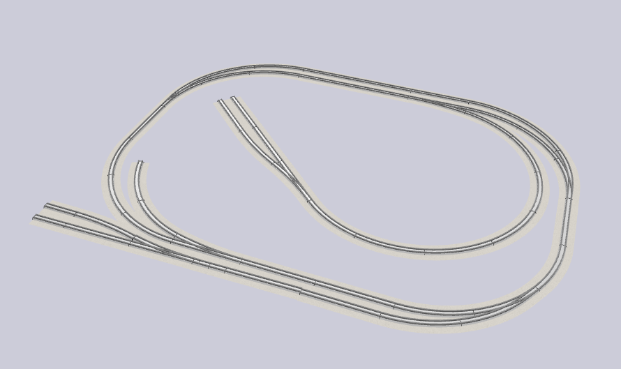 Tervezgettem kicsit. Eddig ezt sikerült. Ez így elég béna. Túlságosan a szélére megy és párhuzamosak a vágányok az oldalakkal. |