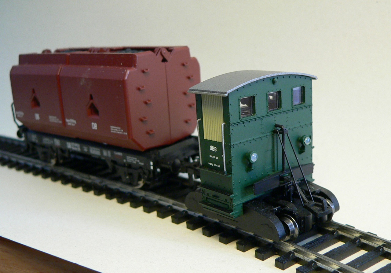 Bécsben a Westbahnhof-on még láttam ilyen Breuer traktort. Sajnos a Rivarossi egy kicsit máskép oldotta meg az összekapcsolást a vontatott kocsival, de igy is jól mutat.