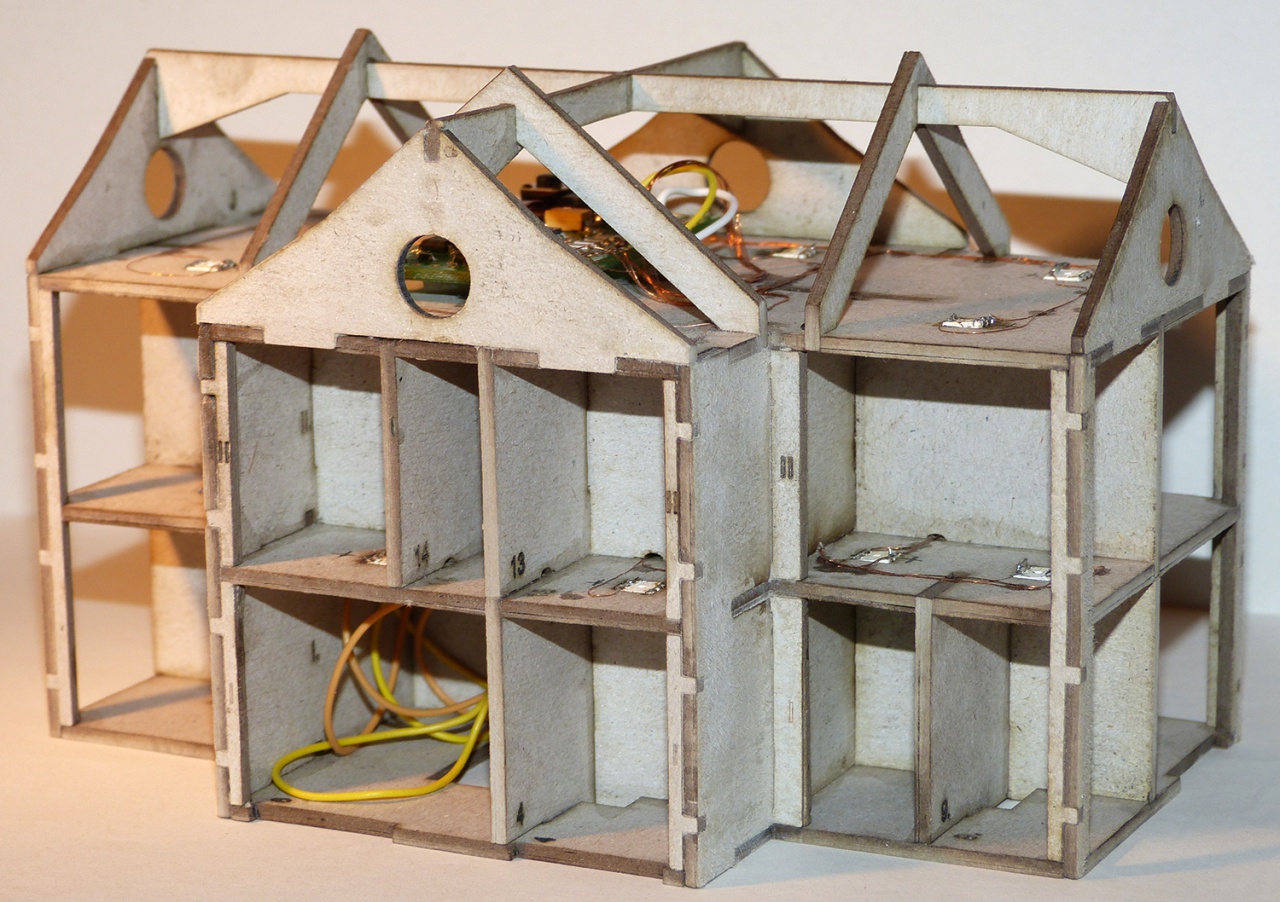 Mindent lézerrel. Az ajtót és az ablakokat mással nem is lehetne. Az ajtóba a bemarás gravírozással készült. Itt próbáltam ki először. Eddig úgy oldottam meg, hogy kivágtam és papírt ragasztottam mögé. Az a megoldás bumfordinak tűnt, gravírozva élethűbb és szebb. |