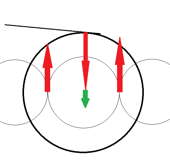 Az áramszedö ilyen esetben csak akkor lehetne rugo,,ha nincs hajtás a keréken - pl a 6 tengelyes régebbi TT mozdonyok. Ott valoban az áramszedö nyomja a kereket a sinre. A te esetedben ez egy rossz konstrukcio - egyetlen elönye, hogy girbe görbe sineken nem emeli ki a 2 fix tengelyt a sinekböl.