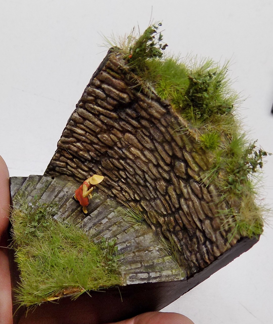 Egy, sajnos már néhai, kulisszafestö barátom annak idején sok minden ilyen trükkbe beavatott, de akkor nem volt a terepasztalomon háttér. Az ember sokszor csak bámult hogy a néhány négyzetméteres szinpad a kulisszáktol focistadion méretü lett.