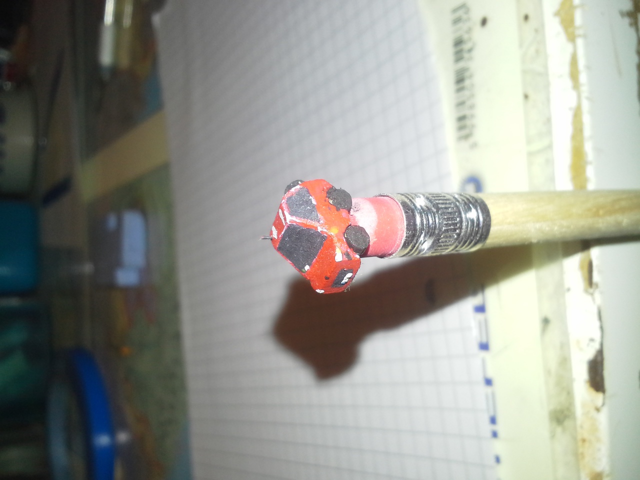 Általam készített apróság, az autó kézzel lett festve egy 2 méretű Revell ecsettel, és 11 mm hosszú, 9 mm széles, és egy átalakított Volkswagen Golfot mintáz: |