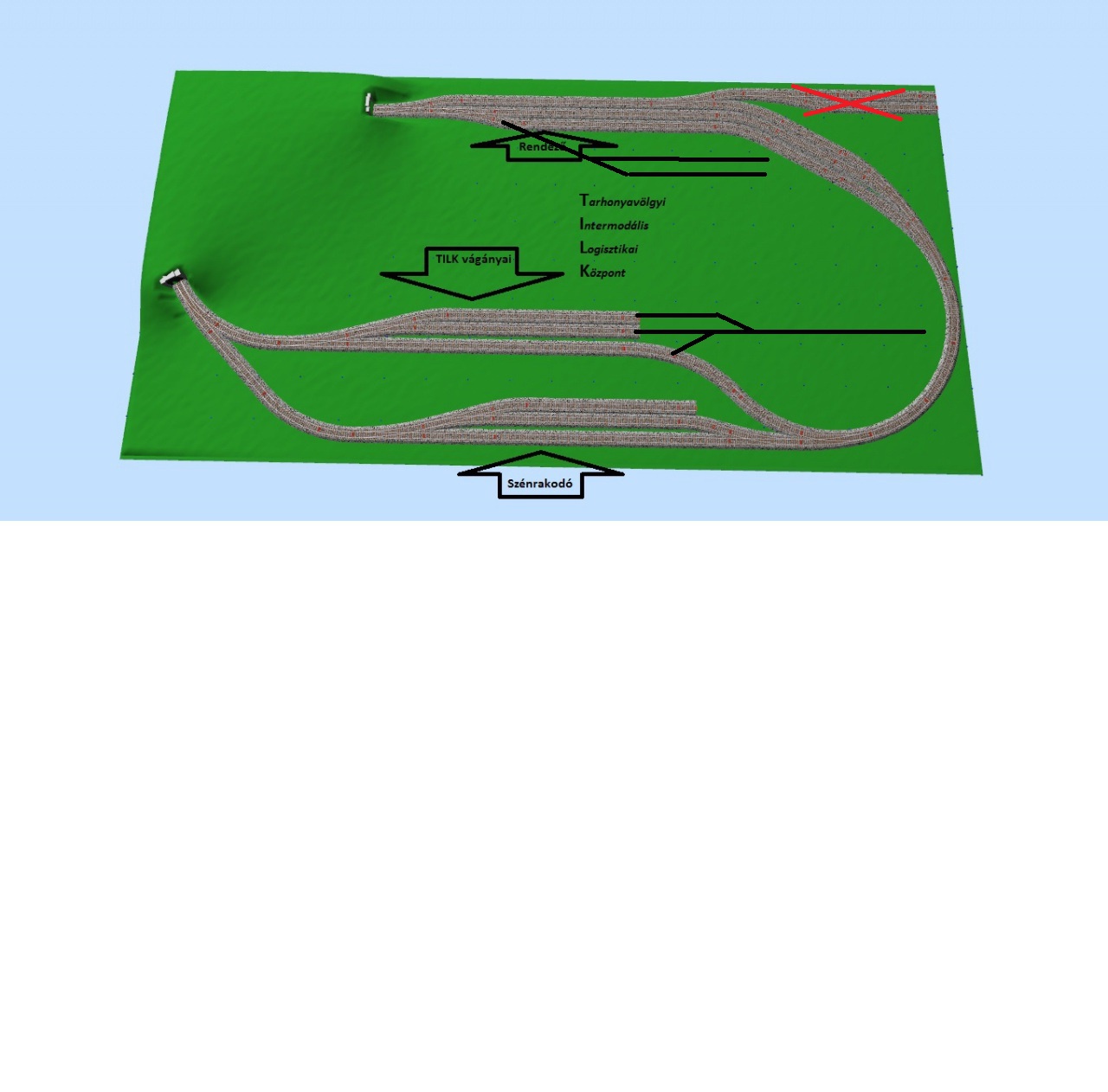 Mintha átestél volna a ló túloldalára. A fiókod növekedésével úgy érzem elveszett az eredeti koncepció és most már egy nagy katyvaszt látok. Az állomásnak nevezett (jobb szó híján váltókupac) igazából nem használható semmire. Jó esetben 1-2 kocsis szerelvénynél többet nem tudsz ott tárolni. Mindez hátul egy töltés vagy domb mögött. Jobb oldalt lent annak a három vágánynak mi a célja?