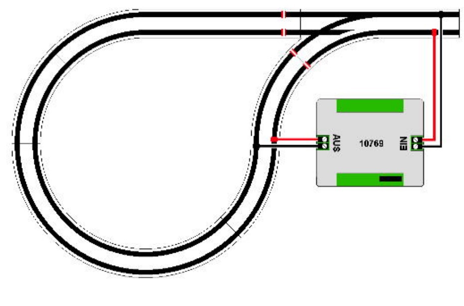 Az analog pályán általában a külsö szakasz polaritását váltják, hiszen a hurkon kivül ellenkezö irányba kell menni, ami, ha azon vonatok vannak nyilván azokra is vonatkozik, és komoly feladatot adhat, ha pl. ott egy állomás következik.