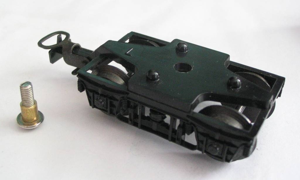Adott egy régi 4 tengelyes, forgóvázas vagon. Ennek a forgóváza eléggé nehezen tudott csak elfordulni is, nem hogy bólintani, vagy csavarodni az alvázhoz képest. Ezért gondoltam hogy szétszedem megnézni, mit lehet tenni. Ugyanis hogy biztosabban fusson, pl emelkedőre fel/le szükséges hogy tudjon a forgóváz mozogni az alvázhoz képest kicsit.