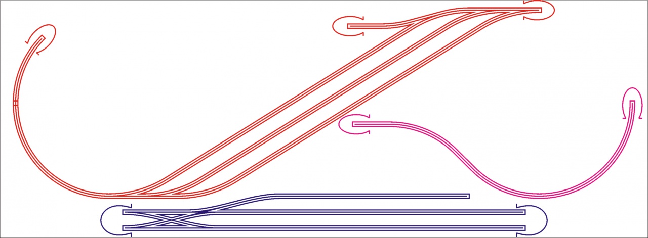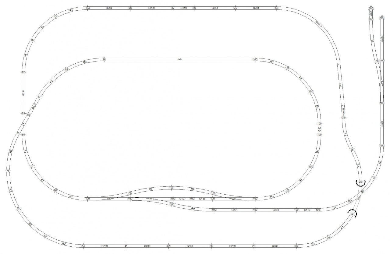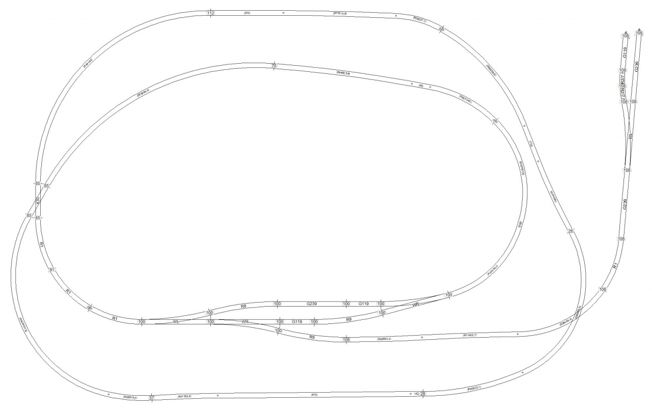 Látom a rajzodon R1-es íveket is használsz. Ezt jól gondold meg, mivel üzembiztonság és látvány szempontjából is necces. Én az R2 íveket csak rejtett helyeken használtam. Alapvetően R3-R4-ből áll a pálya.