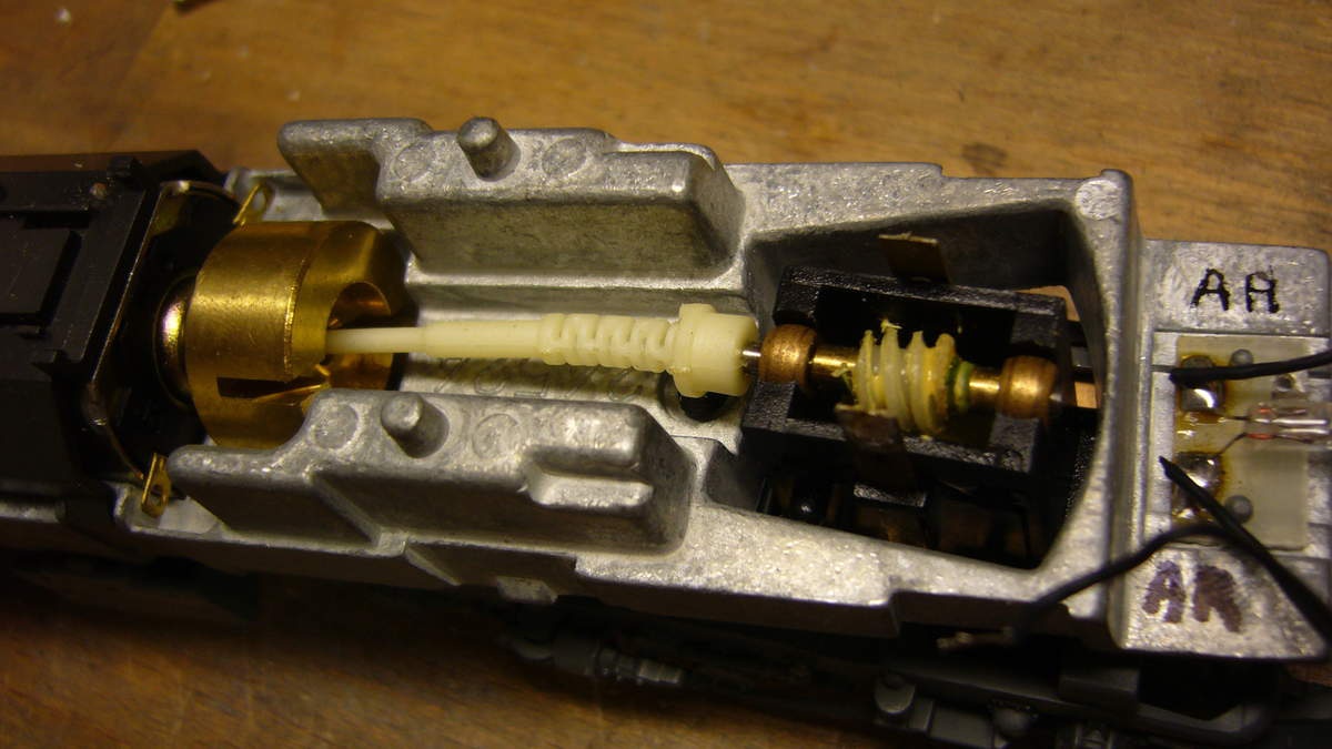 Szóval, volt esze a Märklin konstruktőrnek, aki kitalálta. Egyetlen gyenge pontja van: ennek a fogaskeréknek a tengely furatát eléggé nehéz megkenni, és figyelni kell rá. Az meg nem megoldás, amit a gyár ír, hogy 20 óránként olajozzuk meg. Ugyanis az olaj kb két kör alatt elfogy belőle...