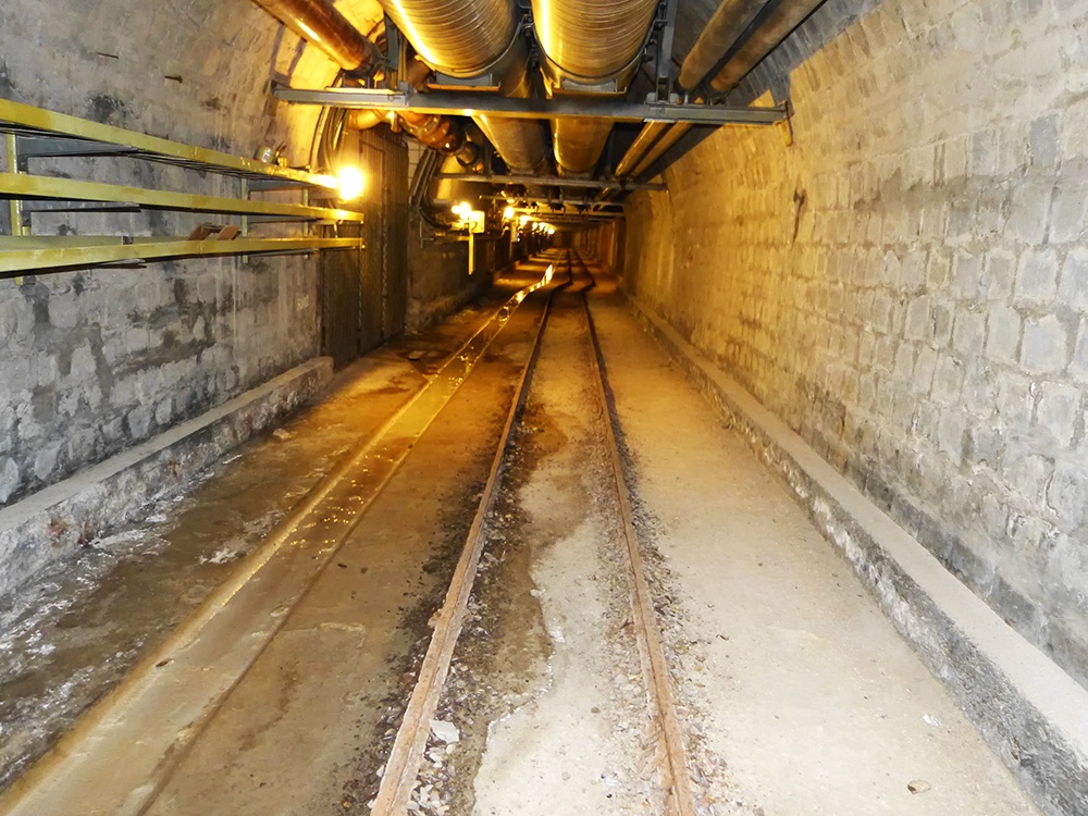 Előző éjjel a munkám a Gellért fürdőn át a Gellérthegy mélyébe vezetett. A kiépített alagútban, az oldalfülkékben találhatóak a források és a kutak. A Gellértből át lehet sétálni a Rudas alatt egészen a Rácz fürdőig. Be lehet jutni a Bencés kolostor alá is, ráadásul ott a mennyezeten egyedül álló karfiol cseppkő képződmények találhatóak. Mikor vájták az alagutat, a kitermelt kőzetet ezen a kisvasúton szállították ki. Később karbantartásoknál jól jött az egyetlen megmaradt kocsi. Mára gyakorlatilag használhatatlan lett a pálya, ugyan is a betörő karsztvizekből kiváló kalcitok a sínkorona magasságáig feltöltötték az alagutat. Nagy része ki lett takarítva, de a sín és a rögzítő elemek oly mértékben korrodáltak, ami lehetetlenné teszi a biztonságos használatot. Jelenleg a vágány mellett az aljzatba vágott csatornában vezetik el a csurgalék vizeket, amik egy zsompba gyűlnek és mennek a Dunába. Kár hogy hagyták így tönkre menni.