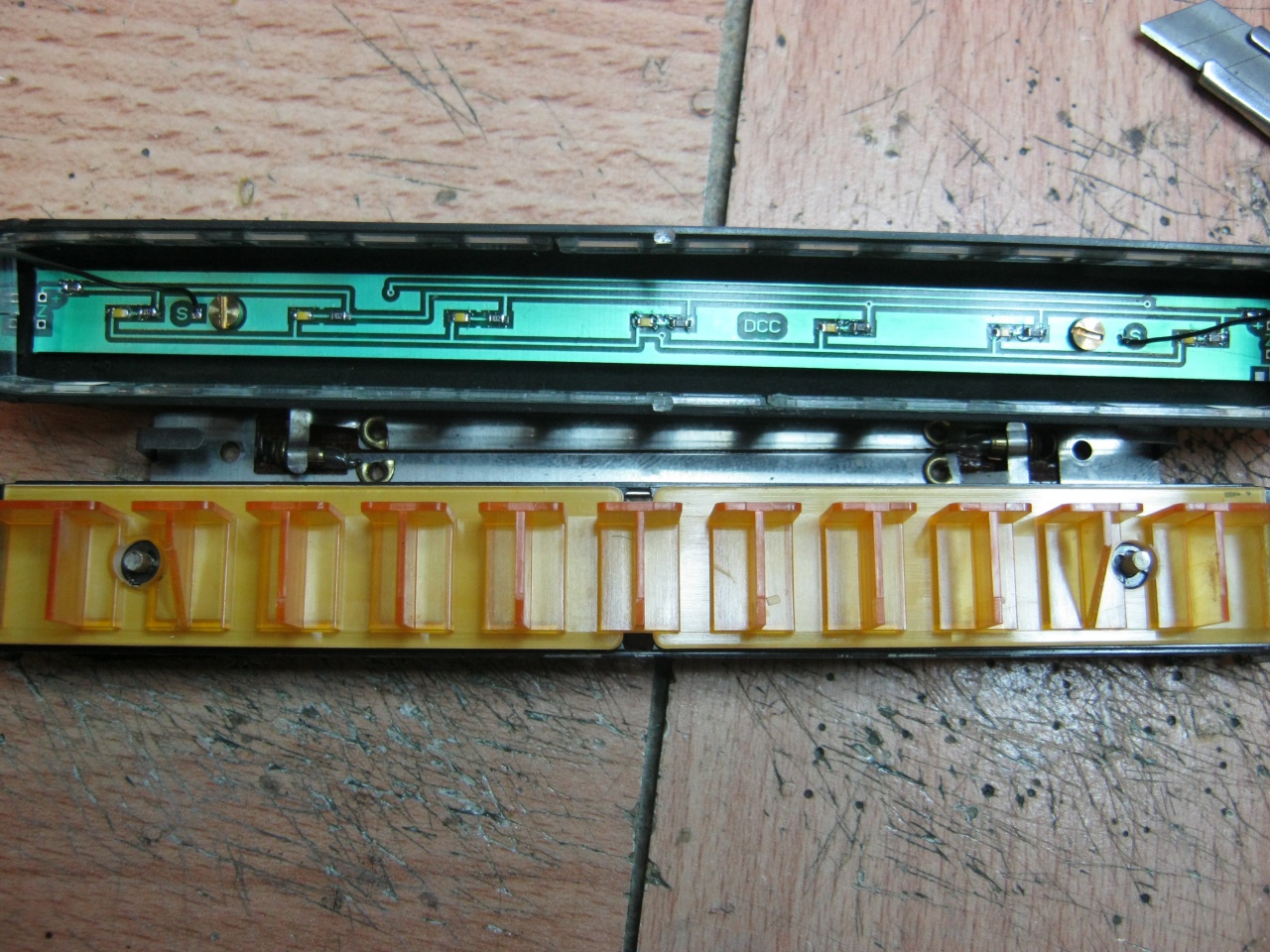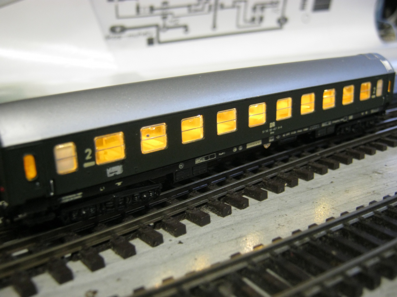 Napi unaloműzésképpen ... egy Roco DRG belső villany... 8 db sárga LED-el, a két utolsó képen.